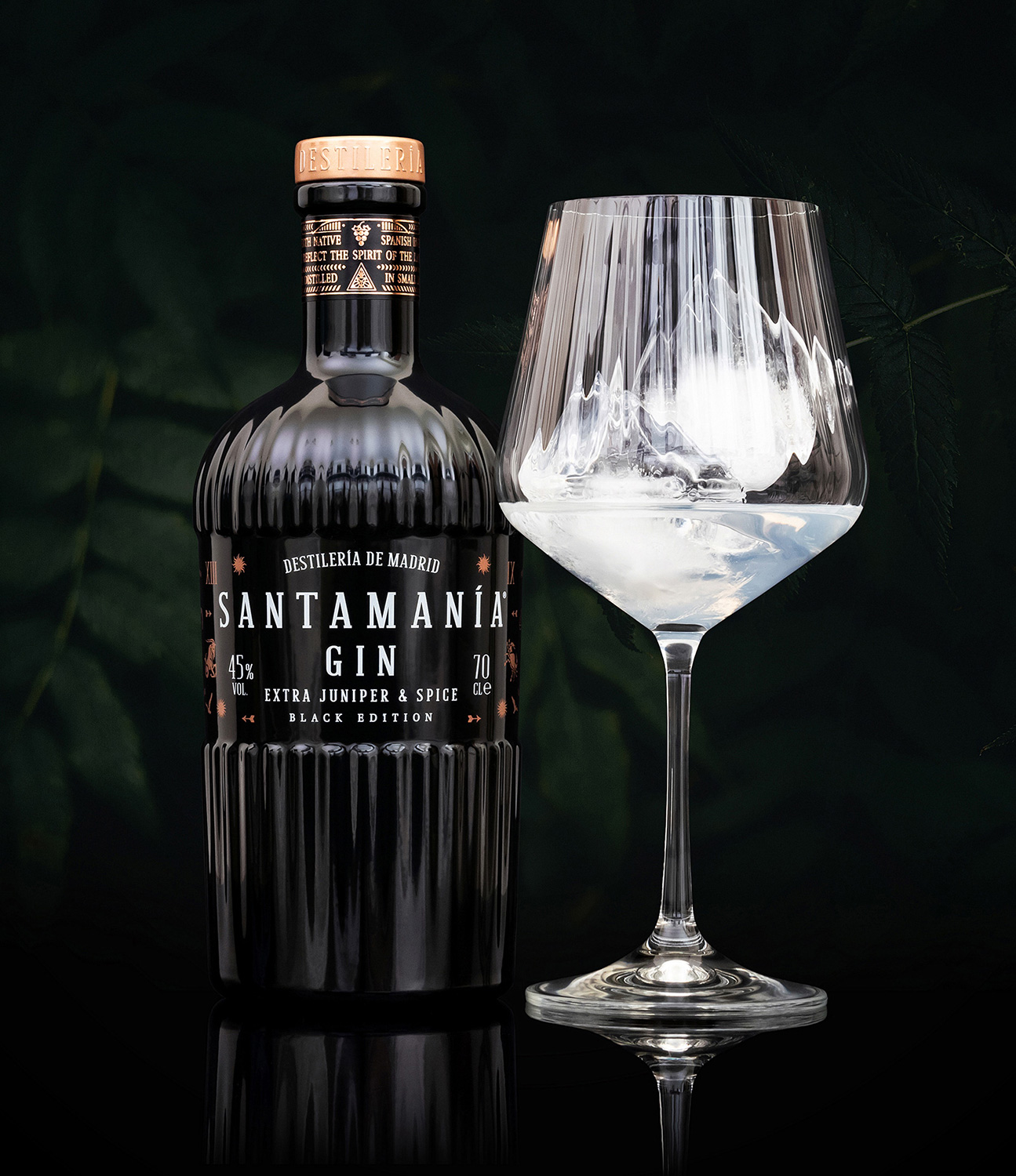 SANTAMANIA Gin Black Edition rivela una complessità straordinaria, quasi magica nel suo equilibrio. Il risultato di un processo di distillazione meticoloso e della qualità senza pari dei suoi ingredienti. Distillato alla perfezione in alambicchi di rame all’avanguardia, unisce il più puro alcol di uva con ginepro fresco e una selezione curata di spezie.